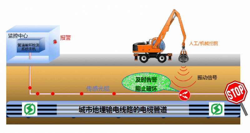 分布式光纤振动/声音探测系统是基于瑞利散射、光时域反射技术原理,集成光学、电子、机械和软件算法等组成的复杂系统,是新一代分布式光纤传感技术的产品。该系统采用单模光纤,光纤既是传输介质,又是传感元件。将光缆敷设于待测体上,即可实时获得光纤上每一点的振动/声音信息,实现长距离的连续在线监测与定位,广泛应用于周界入侵/管道泄漏/第三方施工/地质灾害/海缆扰动等事件的探测。